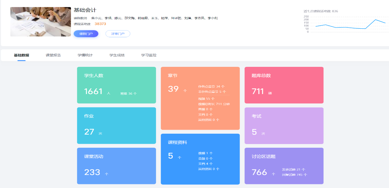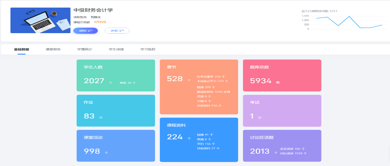 初级财务会计学课程组讨论由课程组负责人朱小云老师主持,分析了目前使用学习通的相关数据,从数据上来看,使用频率较高,具体数据为:累计页面浏览量达到179 413次,累计选课人数达到1 661人,累计互动次数达到1349次,近七日课程活动数达到836。但也存在一些问题,线上的资源还需不断改进,仍然有部分老师使用超星平台或学习通的意愿不强,学生在使用学习通时不够积极,特别是四会的网络需用学生自己的流量,更加难调动学生的积极性。