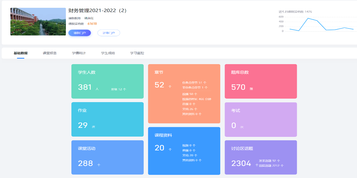 财务管理课程组讨论由课程组负责人姚永红老师主持,分析了目前使用学习通的相关数据,从数据上来看,使用频率较高,具体数据为:累计页面浏览量达到279 294次,累计选课人数达到381人,累计互动次数达到2 413次,近七日课程活动数达到1 476。但仍然存在部分老师不习惯使用超星平台或学习通的情况,且老师们在使用过程中很难坚持;学生主观意愿不强。