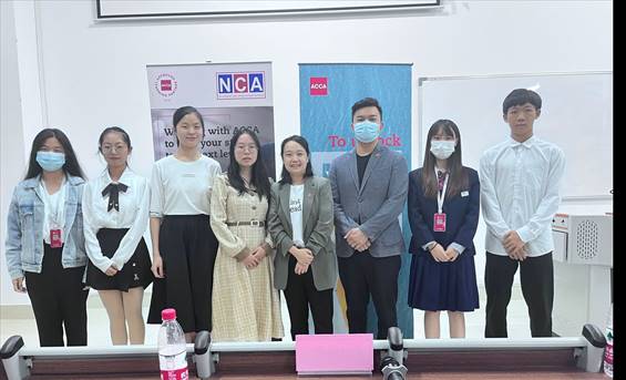 会议第四项议程是由ACCA资深会员、希尔顿酒店广州区财务总监Aden Chong进行分享,他向同学们介绍了当初选择ACCA的理由,这项学习带给他满满的收获,陪伴他完成了成长和蜕变,Aden Chong鼓励各位同学通过ACCA的考试并不难,只需要做好时间管理。