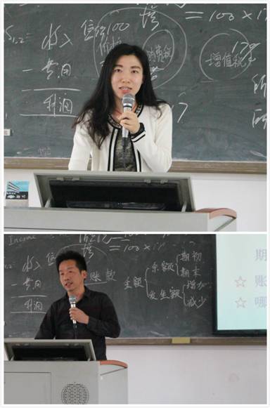 第二位授课教师是审计教研室的田婧老师,田老师讲授的课程是《初级财务会计学》,讲授内容为:第四章:账目与复式记账,其中包括:账目与会计科目、复式记账原理等内容。授课结束后,由周赛林老师为她点评,周教师指出:田老师对概念讲述详细,语言表达清晰,同时善于理论联系实际,同时也指出她的不足之处,希望她能够在教学中突出对方法适用性区分的讲解。
