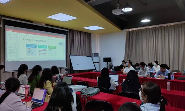 王艳教授首先结合自身从零开始的科研经历,勉励青年教师积极申报各类科研课题,努力进行高水平的科研活动,并从“SPSS”软件简介、数据分析与案例讲解和实践三方面展开培训。