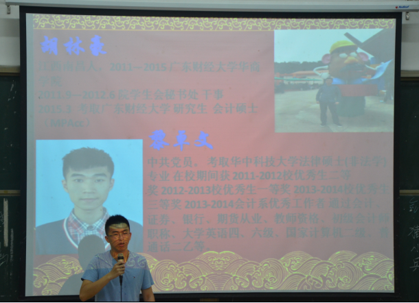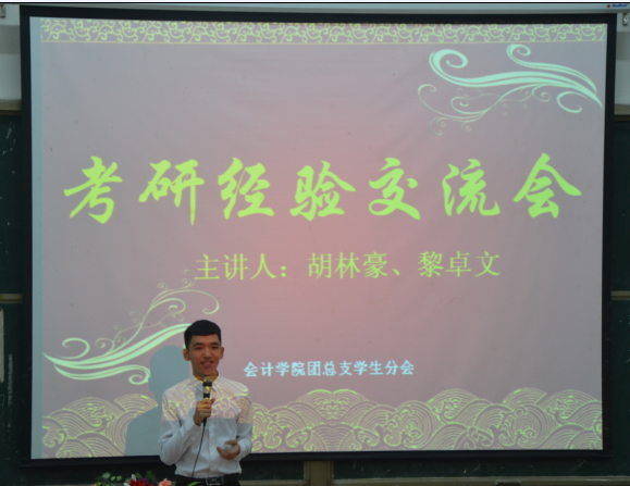 2015年6月16日19时,beat365在线体育官网登录入口团总支学生分会组织举办的考研经验交流会于励志楼C307举行。应邀出席本次交流会的主讲人是beat365优秀毕业生——考上广东财经大学研究生的胡林豪师兄与考上华中科技大学研究生的黎卓文师兄。