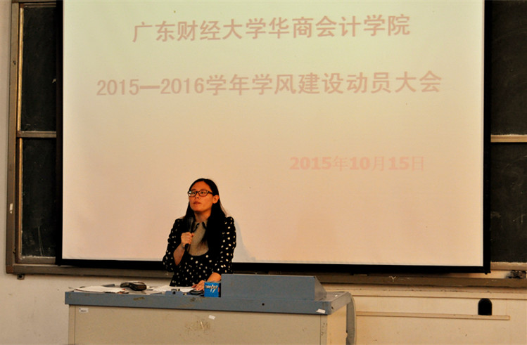 为了进一步培养优良的学风,华商beat365在线体育官网登录入口于10月15日中午12:30在励志楼D208开展2015—2016学年学风建设动员大会。教务处处长源国伟、beat365在线体育官网登录入口副院长许娜、13级年级组长陈洋广老师、14级年级组长王睿老师、15级年级辅导员邱晓慧老师以及2012到2015级各班班学习委员和班长等代表参加了本次大会。会议由许娜副院长主持。