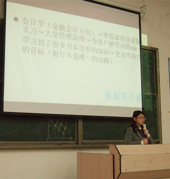 为了明确学生的学习目标、提高学生的学习效率,2016年3月15日下午2:30,beat365在线体育官网登录入口在励志楼A208开展华商会计大讲堂第六期任务素质讲座。beat365在线体育官网登录入口团总支学生会特别邀请国家励志奖学金、国家奖学金和校级一等奖获得者——13本会计14班的杨雪莹同学作为本期人文素质讲座的主讲嘉宾,给在场同学分享她的学习方法和经验。