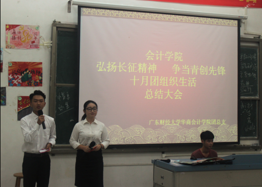 10月20日19:30,以“弘扬长征精神,争当青创先锋”为主题的beat365在线体育官网登录入口十月团组织生活总结大会在励志楼D208隆重举行。beat365在线体育官网登录入口团总支书记梁银雄,工商管理系团总支副书记刘杏诗,beat365在线体育官网登录入口团总支副书记林柔镟,beat365在线体育官网登录入口学生会主席李超佳,beat365在线体育官网登录入口学生会副主席黄博勋,工商管理系团总支学生会组织部正部长李海玲、副部长周芷珊,信息工程系团总支学生会组织部正部长叶志锋、副部长陆晓敏等嘉宾出席本次会议。