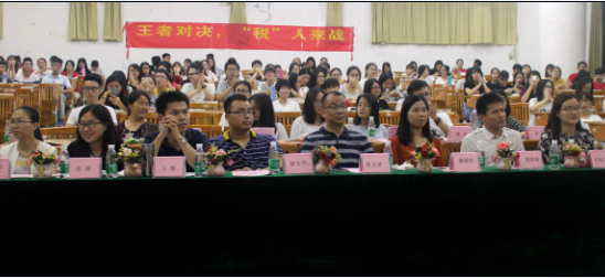 比赛计分之际,夏文斌科长和王敏老师分别上台发言。夏科长引用“少年读书,如隙中窥月;中年读书,如庭中望月;老年读书,如台上玩月,皆是阅历之浅深为所得之浅深耳”的古训,鼓励学生不要为了答题而答题,要弄清相关税收知识和原理。王敏老师希望通过本次大赛让同学们更重视税法,学好税法。同时,他提出三点建议:一是创新比赛形式和内容;二是提高参赛队员心理素质;三是加强与其他学校交流合作。