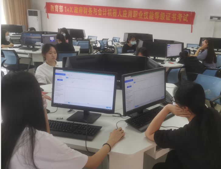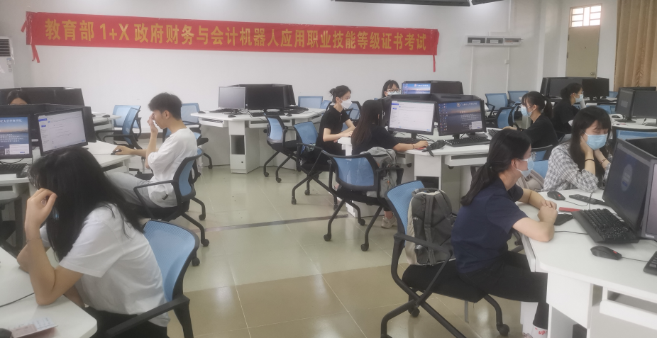 2023年5月20日上午9:00-11:00,beat365在线体育官网登录入口第一期“政府财务与会计机器人应用职业技能等级证书”考试在厚德楼“云计算实验室”顺利举办。