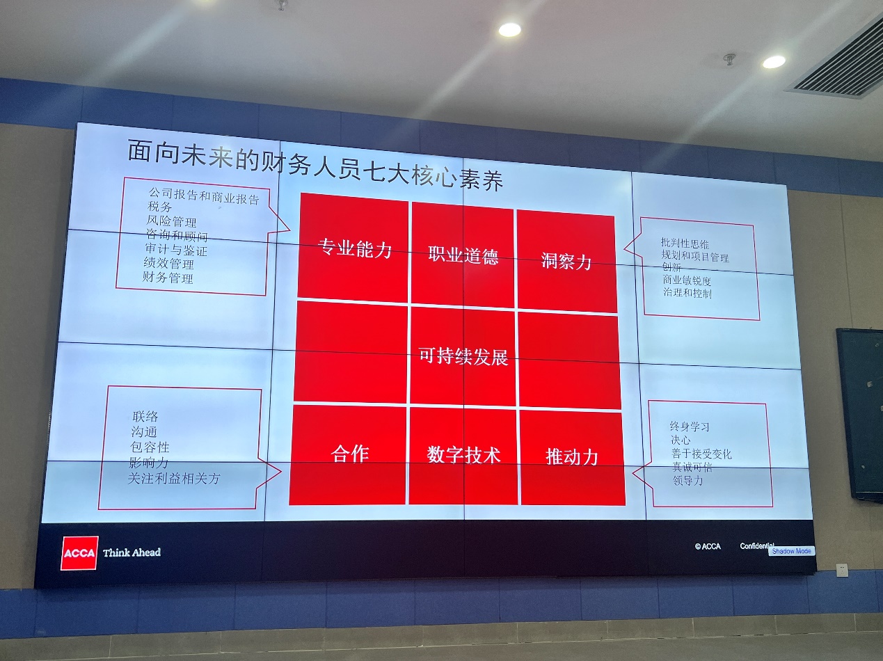 陈双纲经理在讲座中着重指出了未来财务人员必备的七大核心素养:专业能力、职业道德、洞察力、团队合作、数字技术掌握、推动变革的能力以及持续学习的动力。他建议学生在校期间不仅要深化专业知识,还要着力提升软实力,并积极考取初级会计师、CIA、ACCA等国际国内专业资格证书。在学业和职业规划方面,陈经理提出了自己的见解,特别强调了持之以恒和自律精神的重要性。讲座尾声,他鼓励学生们在面对变化和挑战时,应保持积极向上的心态,乐观迎接未来的每一个机遇。