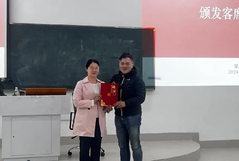 下午,徐灿杰先生为华商学子开展以“香港及美国IPO全景”为主题的讲座,讲座由beat365在线体育官网登录入口23级年级副主任徐翔宇主持。在主持人热烈而简洁有力地介绍出场嘉宾、对徐灿杰先生进行隆重的欢迎后,覃少冰主任向徐教授颁发客席教授聘书。此举不仅是对徐教授在学术领域所取得卓越成就的认可,也是对其在教育界长期作出的杰出贡献的肯定与赞誉。