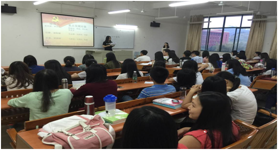 本次会议由彭惠副书记主持并宣布会议的开始。随后,陈淑仪等10位重点发展对象汇报了她们的入党志愿及入党动机。紧接着是我支部谢日彤等7名预备党员等也宣读了他们的转正申请。最后支部党员同志进行不记名投票表决,全体正式党员举手表决全票通过了陈淑仪等10位同志转为预备党员的申请和谢日彤等7名预备党员转为正式党员的申请。