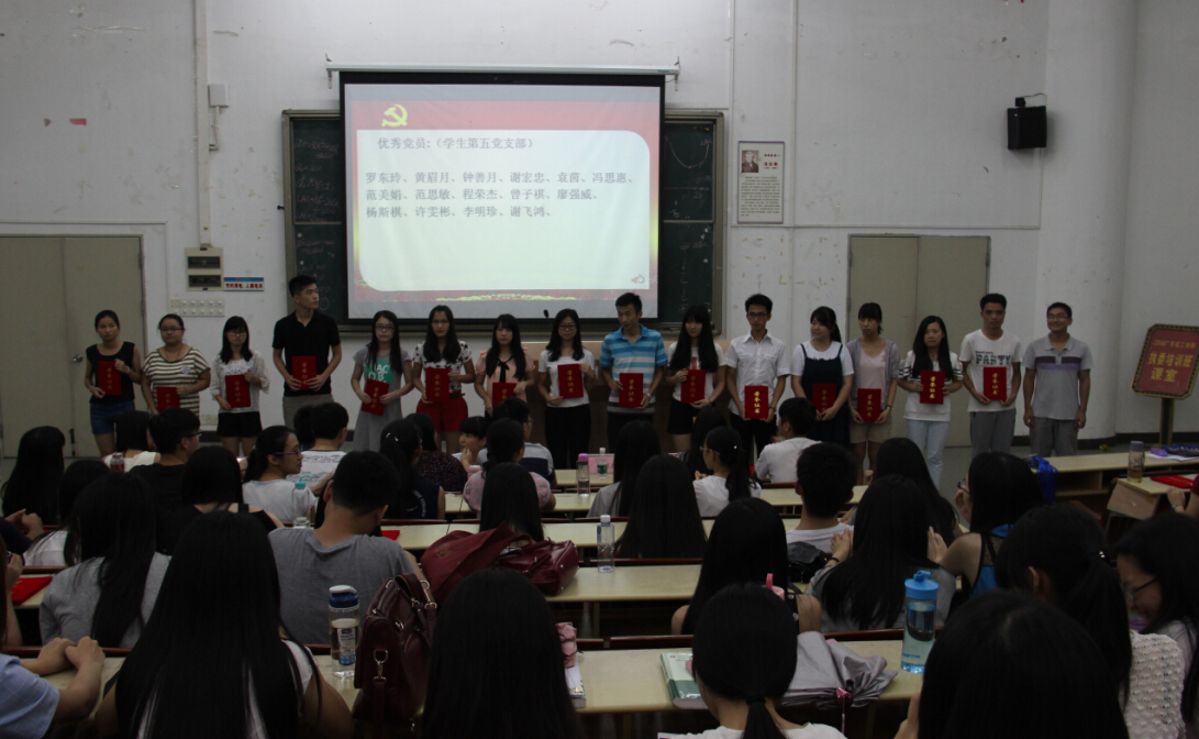 组织委员叶振斌老师宣读了表彰决定,公布陈少明等3名党员评为“优秀党务工作者”、黄惠欢等40名党员评为“优秀党员”、叶秀媚等20名党员评为“先进个人”,希望大家以此为励,继续努力,在做好基本工作的基础上更好地展现自己;并携在座的嘉宾为受表彰的党员同志颁发荣誉证书。