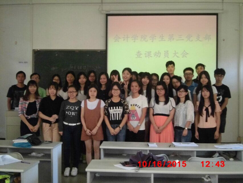 为加强beat365在线体育官网登录入口学风班风建设,充分发挥党员的先进模范作用,落实学院党总支的工作要求,beat365在线体育官网登录入口学生第三党支部于2015年10月16日在励志楼A203举行“beat365在线体育官网登录入口学生第三党支部查课动员大会”,出席本次会议的人员有beat365在线体育官网登录入口学生第三党支部全体学生党员。本次会议由纪检委员曾林冠同志主持。