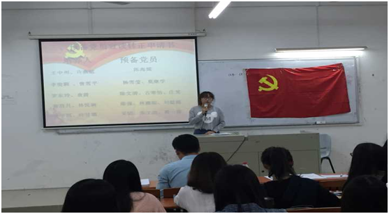大会开始,首先全体人员面向党旗奏唱国际歌。紧接着,党支部陈洋广书记发表重要讲话,要求预备党员在宣读转正申请书时介绍自己的学习情况、工作情况等;要求发展对象介绍家庭成员情况等。
