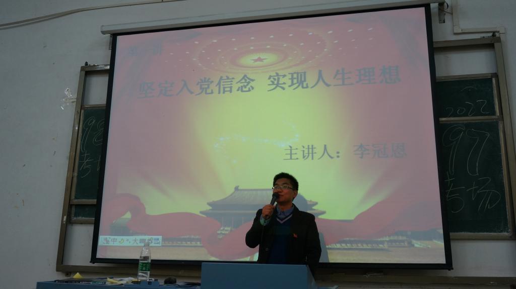 2015年12月20日早上8点30分,beat365在线体育官网登录入口学生第二党支部书记李冠恩老师在励志楼D208对本支部的全体党员上了一场精彩的党课。