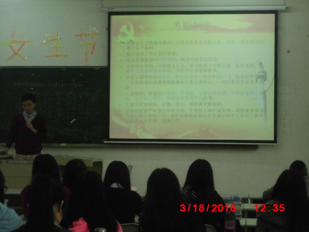 3月18日,beat365在线体育官网登录入口学生第三党支部在励志楼A203举行beat365在线体育官网登录入口学生第三党支部“入党积极分子党课动员大会”。参加本次会议人员有beat365在线体育官网登录入口学生第三党支部4名支委和各班入党积极分子共26人。本次会议由纪委曾林冠同志主持。