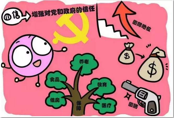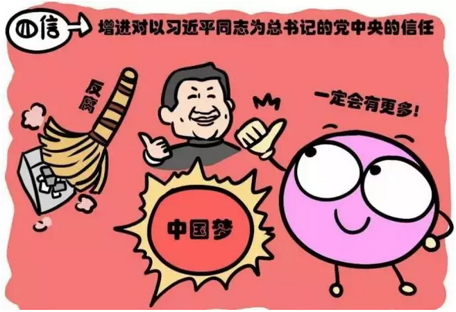 四信牢固树立对党的科学理论的信仰、坚定走中国特色社会主义道路实现中国梦的信念、增强对党和政府的信任、增进对以习近平同志为总书记的党中央的信赖。