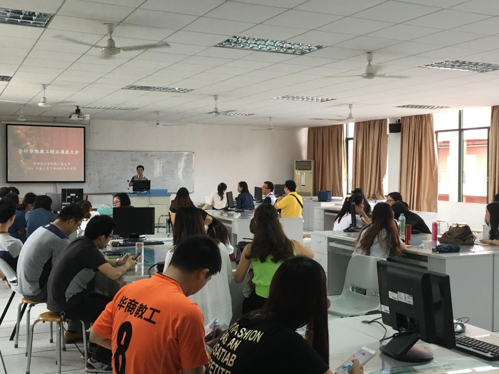 2016年4月26日下午,华商beat365在线体育官网登录入口教工党支部在厚德楼A507教室隆重举行了该年度预备党员转正及通表大会,出席本次大会的有华商beat365在线体育官网登录入口教工党支部书记王敏和全体教工党员。