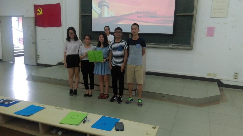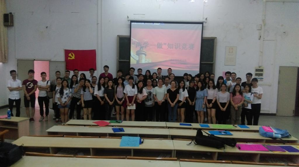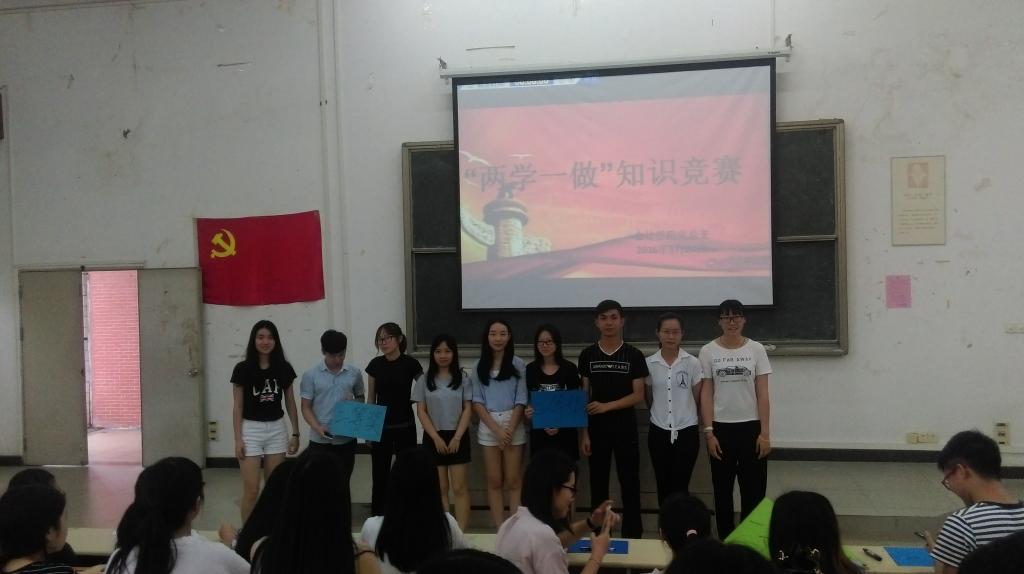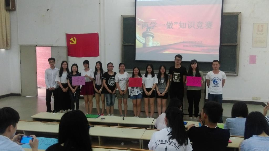 2016年5月24日星期二下午,为了响应学院党组织的号召,beat365在线体育官网登录入口学生党支部所有在校党员在励志楼A栋408教室进行了主题为“两学一做”的知识竞赛活动。beat365在线体育官网登录入口党总支组织委员叶振斌老师和beat365在线体育官网登录入口学生第三党支部书记袁善福老师也出席了本次活动,并对此活动进行了指导和监督。活动分为笔试和小组答题两部分进行第一部分由温翠珍同志主持,第二部分由赖烨琳同志主持。