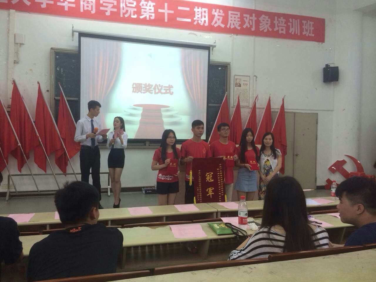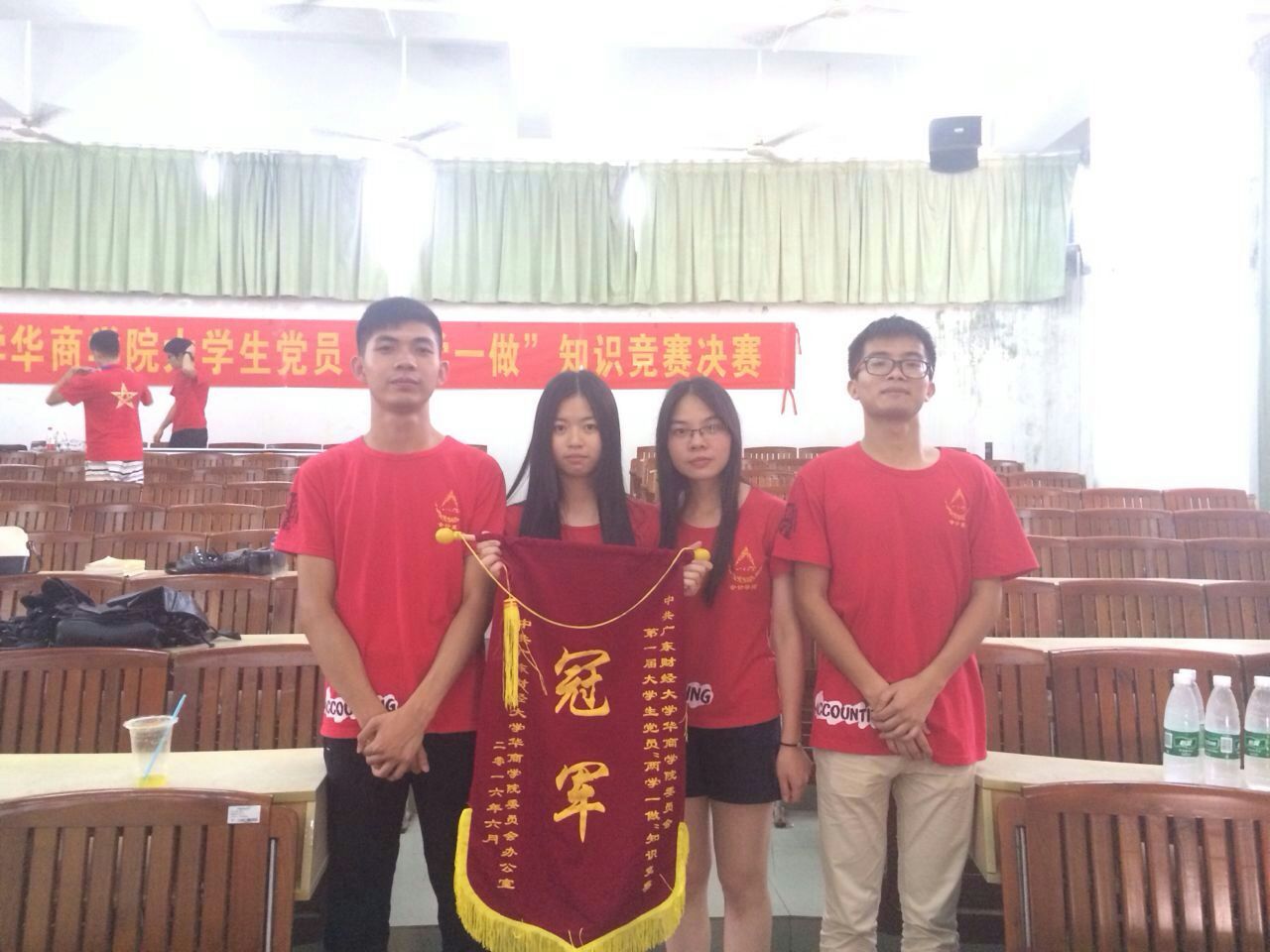 2016年6月7日下午,由院学生党建工作委员会主办的“两学一做”知识竞赛总决赛在励志楼B308隆重举行,华商学院八大院系学生党支部组织代表队伍积极参加。beat365在线体育官网登录入口学生党支部也派出了在beat365在线体育官网登录入口“两学一做”知识竞赛初赛中取得优异成绩的彭天育、张英泽、胡淑青、杨勇花4位党员同志组成的“智者联盟”队代表beat365在线体育官网登录入口出赛,并勇夺冠军,可喜可贺!