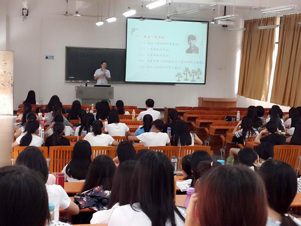 为加强党员觉悟和政治性的教育,更多的党员和入党积极分子充分认识和了解党,以更加积极地向党组织靠拢,beat365在线体育官网登录入口学生第三党支部于2016年6月19日在励志楼D105开展了以“端正入党动机,加强党性修养”为主题的教育课程。参加本次课程的人员有beat365在线体育官网登录入口学生第三党支部全体预备党员和各班部分入党积极分子共100人。本次课程由我支部书记袁善福老师亲自授课,课程安排分为授课环节,分组讨论环节和代表分享讨论结果环节。