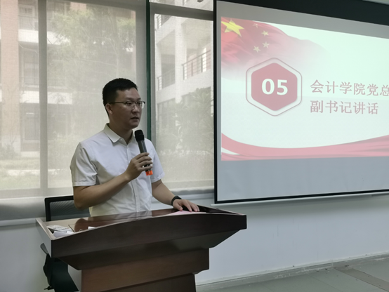 beat365在线体育官网登录入口党总支副书记陈洋广就进一步开展党史学习教育提出具体意见。他认为开展党史学习教育是党的政治生活中的一件大事,要统筹谋划,狠抓落实,打牢每位党员明理、增信、崇德、力行的思想基础。从“统一思想,提高认识,做政治坚定的表率”、“加强领导,精心组织,做带头学习的表率”和“立足岗位,提高本领,做担当实干的表率”三个方面严格要求自己,牢记初心使命,树立担当意识,创新工作模式,在立德树人教育中展现更大担当、更大作为,充分发挥党员先锋模范作用。