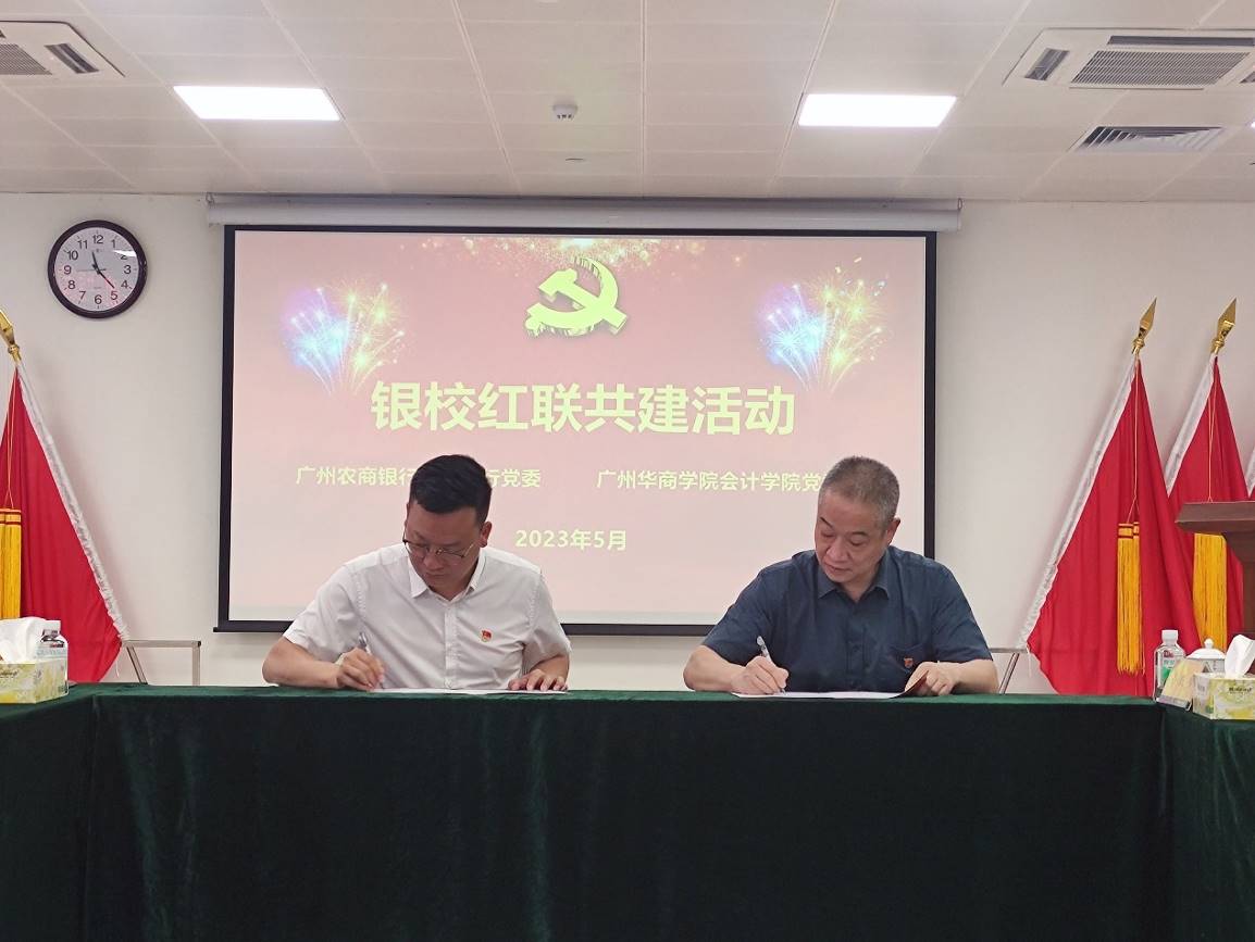 2023年5月26日,beat365在线体育官网登录入口党委和广州农商银行增城支行(简称“农商行增城支行”)党委在合汇广场增城农商行总部进行红联共建主题活动及签约仪式。本次活动是根据学习贯彻习近平新时代中国特色社会主义思想主题教育的要求,结合共建双方实际,实现资源共享、优势互补、互助共建,促进党建与业务发展“同频共振”,开展“校银携手,合作共赢”为主题的红联共建工作。广州农商银行增城支行党委副书记纪委书记赵明、党委委员兼行长助理谢超颖、党委委员兼零售业务部经理田春雷,beat365在线体育官网登录入口党委副书记陈洋广、党委委员兼副院长周书域、学院学工副主任兼党支部书记杨烨瀚等领导出席活动。农商行增城支行部门经理、员工党员代表,beat365在线体育官网登录入口部分党支部书记、20名学生党员代表共同参加本次活动。