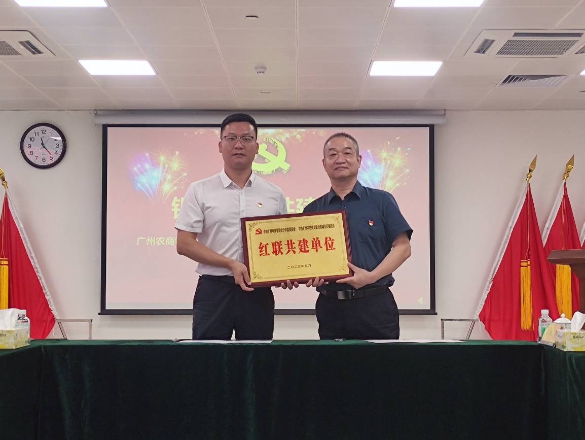活动中,陈洋广副书记一行参观广州农商银行增城支行营业厅、财富中心和党建文化长廊。双方党委副书记分别介绍了各自党建工作情况及亮点,对携手共建的未来充满希望和信心。在全体参会人员的见证下,双方签订了红联共建协议并赠与红联共建牌匾。