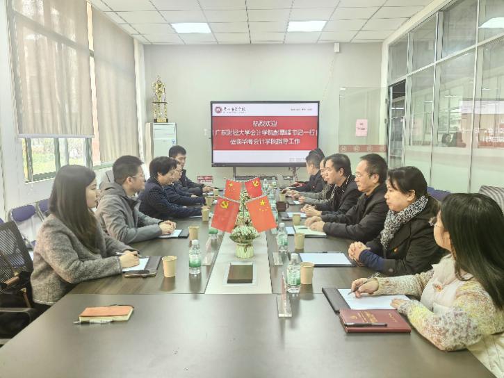 姚凤民院长首先对彭翠峰书记一行的到来表示热烈欢迎,并简要介绍了华商教育集团、beat365在线体育官网登录入口及beat365在线体育官网登录入口的基本情况。彭翠峰书记随后介绍了广东财经大学beat365在线体育官网登录入口的概况,包括整体结构、师资队伍、人才培养、科研成就、校友工作和党建工作,尤其是深入阐述的党建六维协同模式。