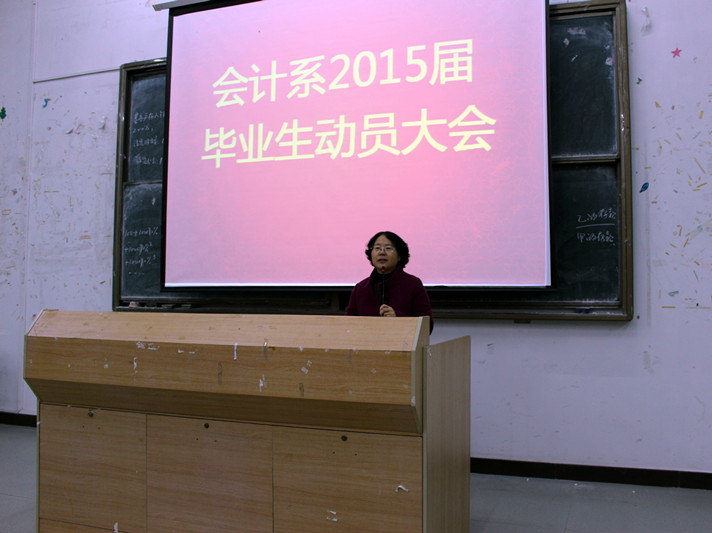 晚上7点,广东财经大学华商学院beat365在线体育官网登录入口2015届毕业生动员大会在励志楼B207隆重召开。beat365在线体育官网登录入口主任马玉珍教授、副主任柳学坤教授、学生工作副主任许娜老师以及全体毕业生辅导员出席本次大会。本次会议由童蓉老师主持。