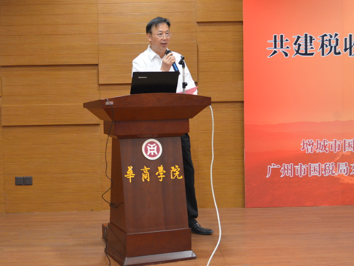 廖榕就董事长讲到,华商学院从办学以来一直致力于为广东中小企业及社会机构培养高素质的本科应用型人才,且依托母体院校广东财经大学在教学及科研上的优势,重点建设会计、金融、财税专业,参照母体院校与地方职能部门合作的成功模式,提高学生综合应用能力。而华商税收宣传教育基地的成立也为增城税务工作人员提供优质的宣传服务,增加学生的税收意识及能力。最后,他预祝华商宣传教育基地取得圆满成功。