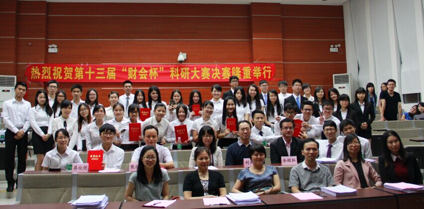 2015年5月13日18点30分,由广东财经大学beat365在线体育官网登录入口主办的第十三届“财会杯”科研大赛决赛在其北校区北3-103研究生学术报告厅隆重举行,beat365的刘彩兰老师应邀担任本次大赛的评委之一。beat365代表队伍Super Team队(队长:李东明,队员:邓锦兴、黄敏仪、黄慧娴)在广财大总决赛的舞台上力战四路群雄,表现优异,最终获得“三等奖”的好成绩,只是以微弱的差距落后于获二等奖广东金融学院。