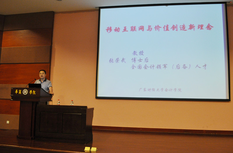 为了庆祝华商十周年校庆,为了让学生更加了解当今社会对会计工作方面的新需求,华商beat365在线体育官网登录入口于2015年11月10日在会议中心四楼报告厅举行以“移动互联网与价值创造新理念”为主题的讲座。广东财经大学beat365在线体育官网登录入口主任张荣武教授作为特邀嘉宾,给beat365在线体育官网登录入口师生奉献了一场关于会计与移动互联网未来的精彩演说。