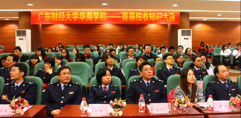 12月9日晚7:00,由增城区国税局、地税局以及华商beat365在线体育官网登录入口联合举办的“首届税收知识大赛”决赛在图书馆报告厅隆重举行。增城区地税局副局长钟健民、科长叶衍青和增城区国税局副局长熊万里、税政科副科长黄莹莹、以及华商beat365在线体育官网登录入口院长马玉珍、副院长巴雅尔、副院长许娜、太阳城财务总监刘文琦女士等评委和嘉宾出席了本次大赛。