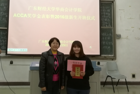 其次,许娜副院长宣读华商beat365在线体育官网登录入口ACCA奖学金评选办法和2016年ACCA学生获奖名单。beat365在线体育官网登录入口领导和中博诚通董事师韫分别为获得一二三等奖学金的ACCA优秀学生颁发了奖金和荣誉证书。一等奖学金获得者——13级ACCA班陈春谨同学作为代表,给同学们分享了ACCA的学习心得和体会。