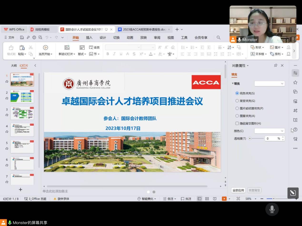 为了高效推进卓越国际会计人才培养项目开展,2023年10月18日,beat365在线体育官网登录入口卓越国际会计人才培养项目讨论会在腾讯会议线上举行。会议由陈蒙梦副教授主持,参会人有陈顺意、何子昉、胡曼曼、李晶菁、吕晓玥、陈雪欣、叶国安等八位老师。会议主要围绕着项目进展、ACCA各科目建设情况和未来结项预期等进行研讨,并且就后续卓越国际会计人才培养项目的后续推进达成共识。