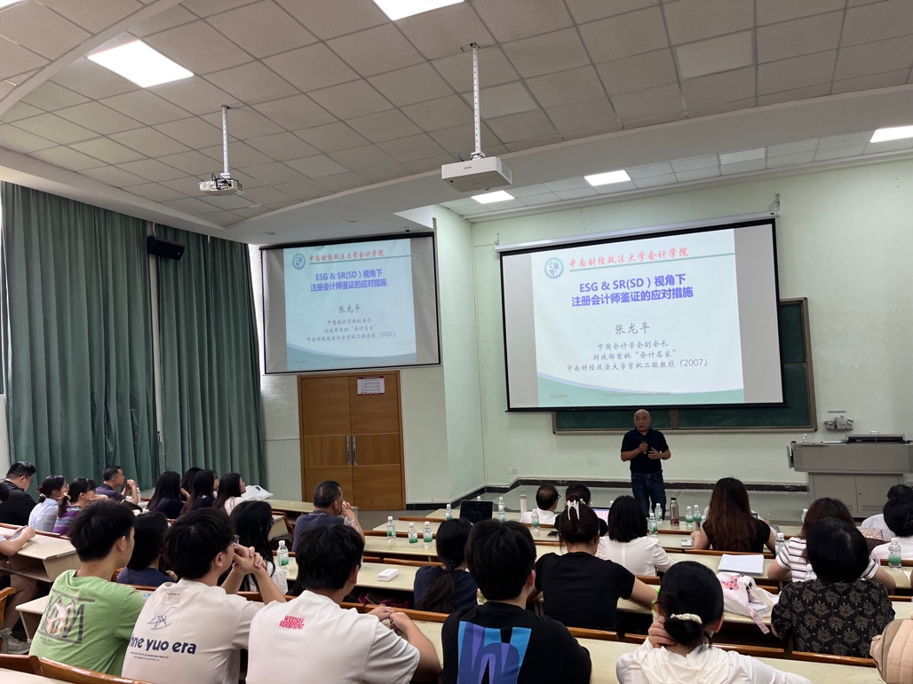 中南财经政法大学张龙平教授为beat365在线体育官网登录入口师生作题为《ESG&SR(SD)视角下注册会计师鉴证应对策略》的专题报告。张教授系统阐述了ESG/SR报告的背景、七大核心争议、全球统一准则的发展趋势以及这个趋势带来的“双重报告”革命。他重点分析了这对注册会计师行业产生的深远影响,特别是对独立鉴证业务带来的巨大机遇与严峻挑战,并提出了CPA行业积极应对的八项具体措施。他强调,这场变革要求财会审计监督和国家治理的目标、范围、思路和方法都必须进行根本性的重塑与变革。