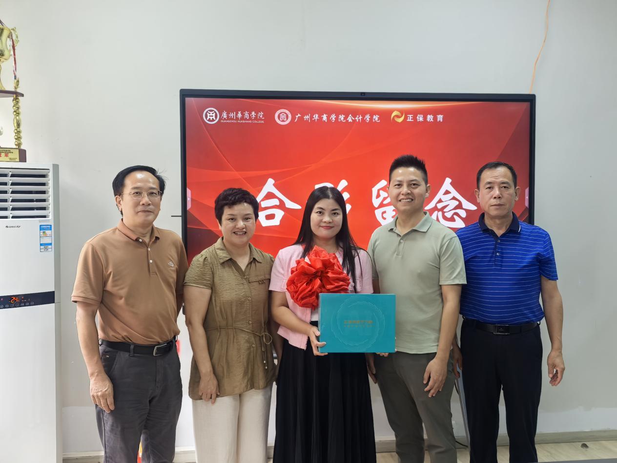 在热烈的掌声中,正保教育集团大区总监兼广东区总经理杨智浩先生、正保教育集团广州区域经理范雪娇女士上台,向李志凤老师赠送了精心准备的正保学习机设备。这不仅是一份礼物,更是对一线教师深耕教学、探索创新的崇高敬意,也体现了正保教育“科技赋能教育”的企业责任感与对高校事业发展的坚定支持。