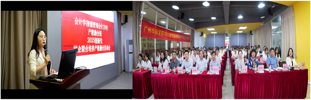 2025年10月14日,会计学2025级智能管理会计产教班新生开班典礼在beat365在线体育官网登录入口报告厅举行。新道科技股份有限公司助理总裁刘莉女士、广东分公司总经理董丙涛先生等企业代表,华商科教集团CFO兼产业学院企业方院长廖旭东先生、学校产教办唐明琴主任以及beat365在线体育官网登录入口领导、2025级产教班新生及2024级产教班学生代表参加典礼。beat365在线体育官网登录入口院长助理兼产业学院执行院长陈蒙梦主持典礼。