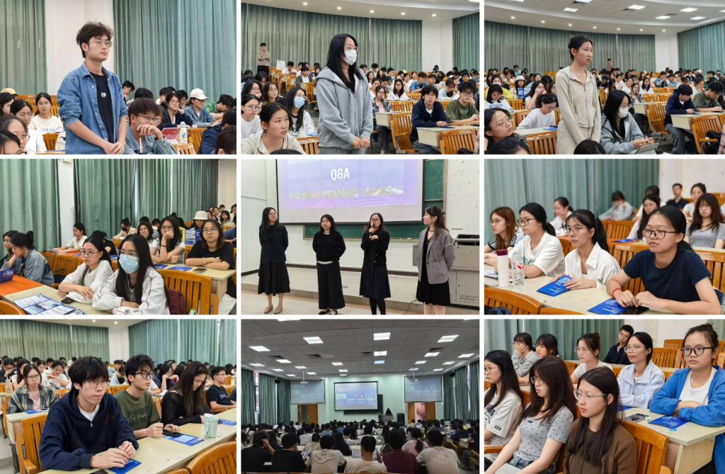 宣讲会尾声的提问环节氛围热烈,学生就网申回复时效、跨专业岗位申请及毕马威中国申请路径等关键问题提问,现场嘉宾逐一予以细致解答。