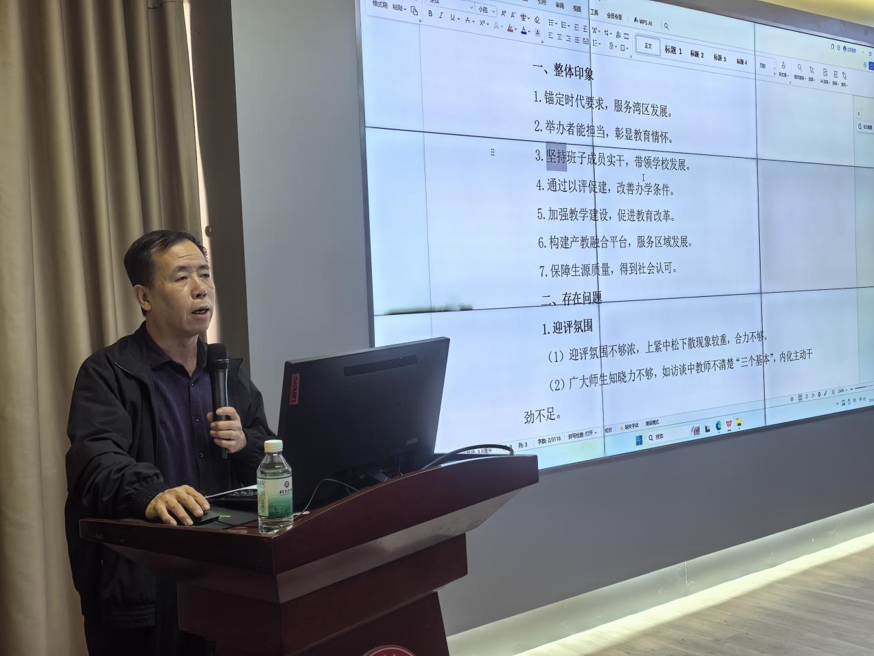 吕峻闽副校长针对本次诊断评估工作,围绕专家意见、学校建设成效及教学改进方向作了系统总结。诊断评估反馈会上,专家组对学校硬件设施给予高度评价,特别是华商五大场馆的投入使用,以及实验教学平台等现代化教学资源的持续投入,为人才培养提供了有力支撑。学校以“根魂体脉本”为内涵建设主线,构建了以华商文化为根、党建思政为魂、人才培养为体、产教融合为脉、师生发展为本的育人体系。当前课堂教学、考试命题、毕业论文等关键环节仍需加强规范与质量提升。部分课堂存在教学方式单一、学生纪律松散等问题,需推动互动式、研讨式教学改革,强化课堂管理。同时,要合理设定考试难度,推进因材施教,强化应用型人才培养导向。吕峻闽副校长特别指出,全体教师应深入理解并践行学校“二协同、五融合”人才培养模式。要求beat365在线体育官网登录入口全体师生继续群策群力、再接再厉,以最好的改革建设成果、最好的状态、最好的氛围迎接本科教学合格评估工作。