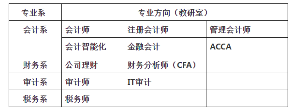 ★财务系。现有教师36人,其中教授5人,副教授7人,中级职称14人,具有博士学位的教师3人。拥有具有高级会计师、注册会计师等职业资格证书的双师型教师17人。其教师团队近几年获得省级项目10余项,出版教材6部,公开发表论文40余篇。