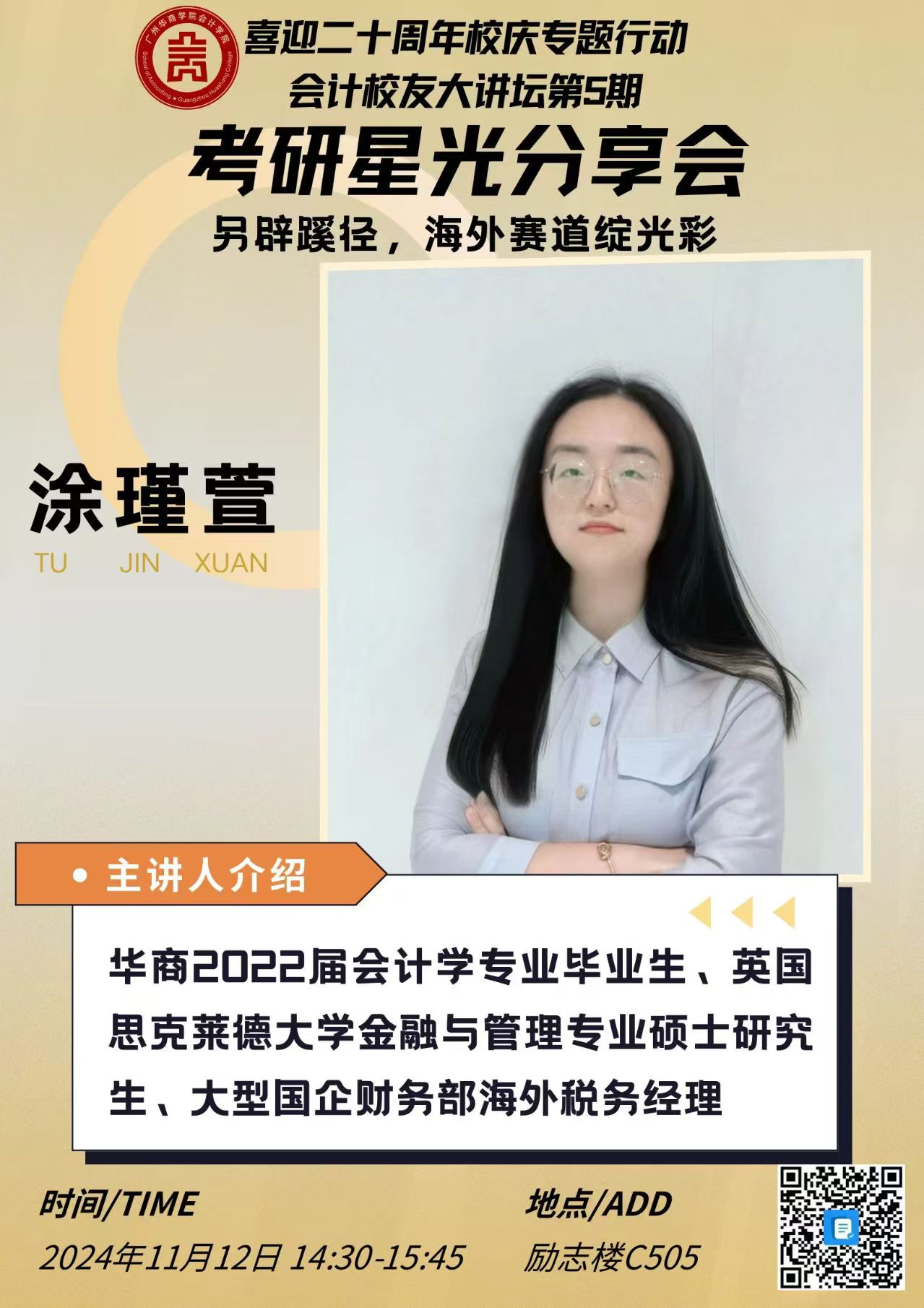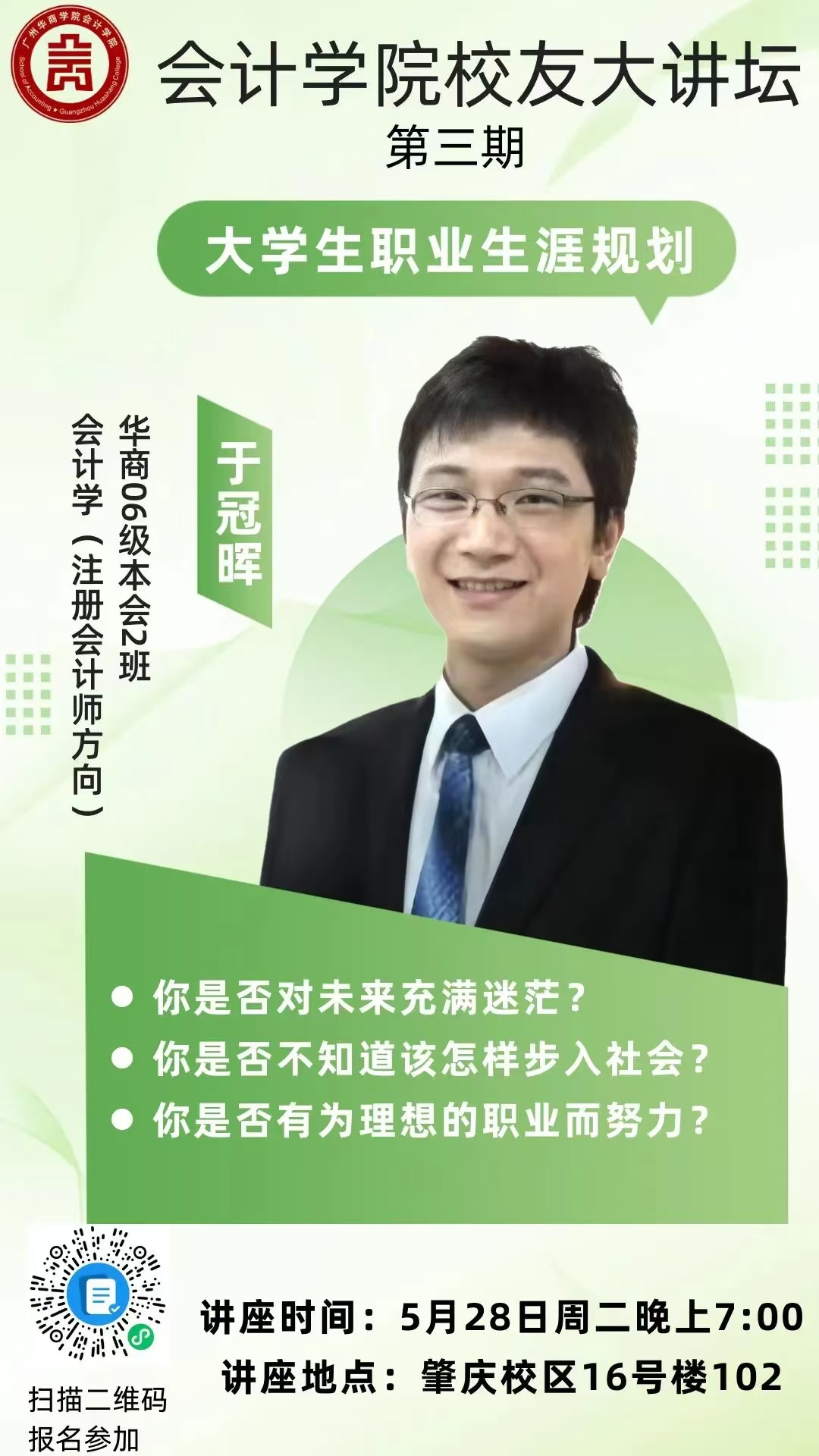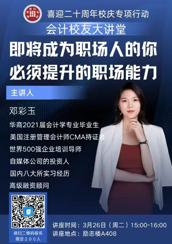 会计校友大讲坛联系人:杨烨瀚 13570910190(微信同号)