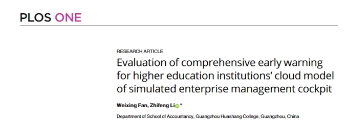 2024年,beat365在线体育官网登录入口范卫星老师以第一作者身份在《PLOS ONE》期刊发表了题为“Evaluation of comprehensive early warning for higher education institutions cloud model of simulated enterprise management cockpit”的论文,该论文的通讯作者是beat365在线体育官网登录入口李志凤老师。该期刊是SCIE检索期刊,是JCR Q1分区,中科院三区。《PLOS ONE》是2006年成立的开放获取期刊,发表人文科学、社会科学、医学和工程学等多个学科的原创研究。