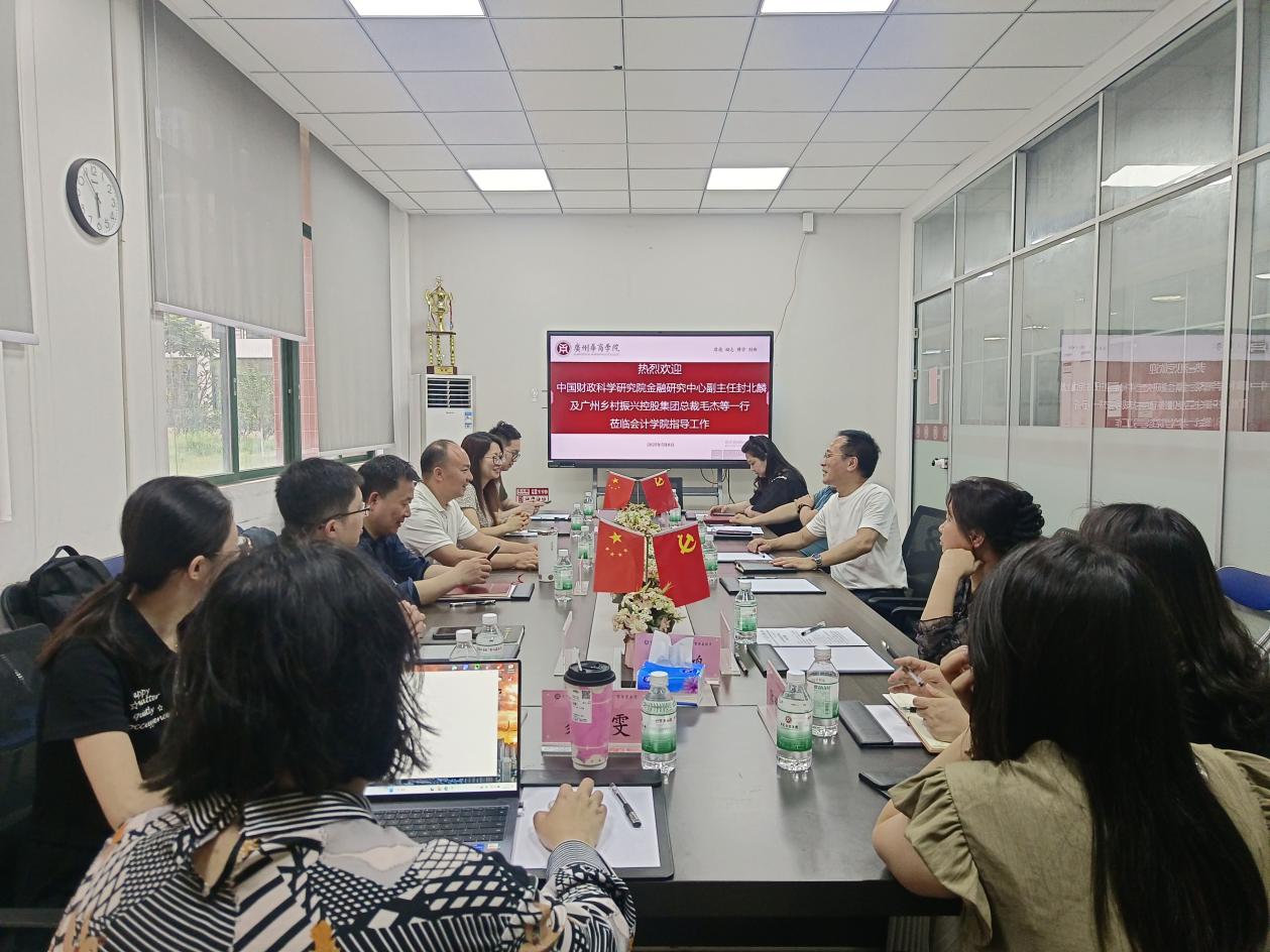 2025年5月8日下午,中国财政科学研究院金融研究中心副主任封北麟、副研究员黄亦炫、助理研究员黄宝竹及广州乡村振兴控股集团总裁毛杰、副总裁何青倩等莅临beat365在线体育官网登录入口指导工作,beat365在线体育官网登录入口党委书记刘善球、副院长杨旻、副院长周书域,以及院长助理陈蒙梦老师、陈平老师等共同参会。双方围绕“乡村振兴战略落地”与“应用型人才培养”两大主题展开思维碰撞。