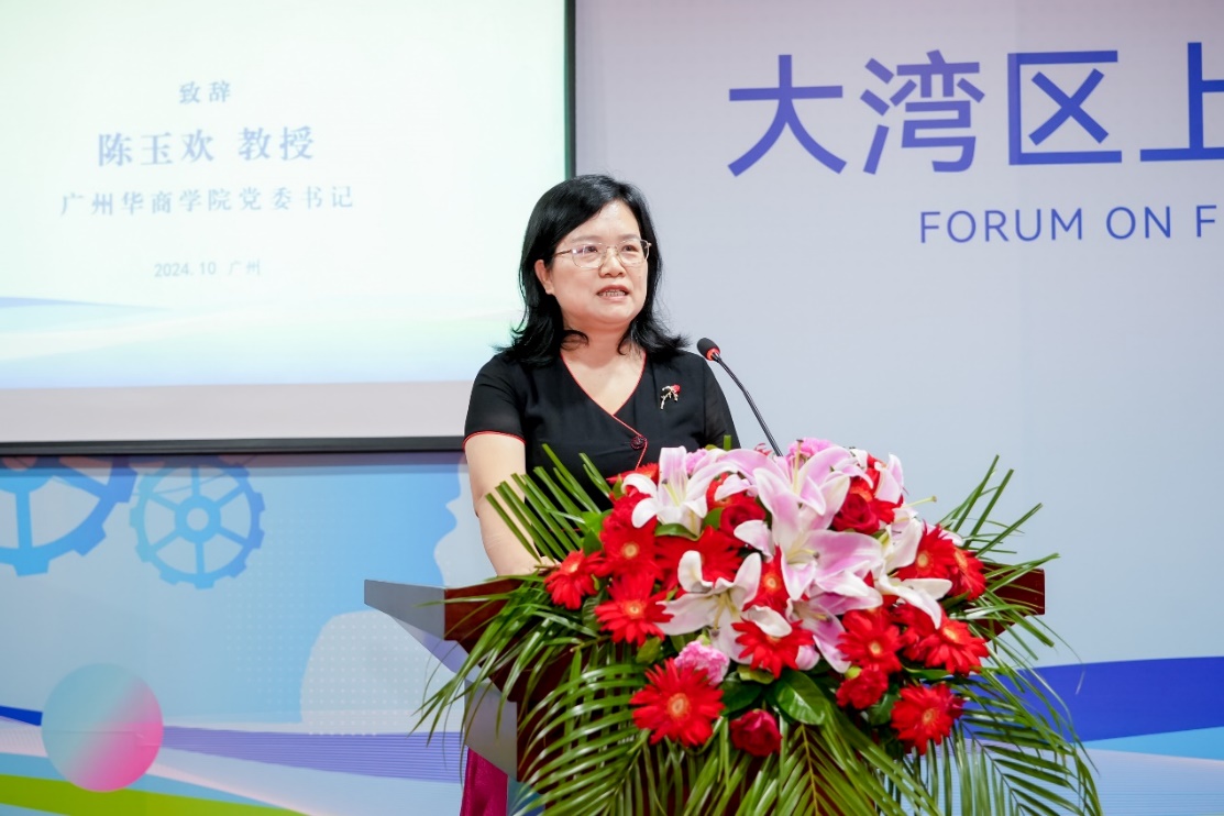论坛首先由beat365在线体育官网登录入口党委书记陈玉欢教授致辞,她肯定了本次论坛对于推动大湾区经济发展的重要性,简要介绍了华商学院并预祝论坛取得圆满成功。