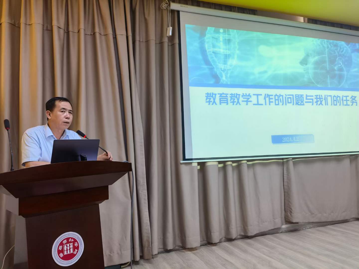 杨旻副院长首先传达了3月26日学校教学工作例会的会议精神,从试卷、毕业论文、课程建设、课堂教学及人才培养方案五个方面详细介绍了本学期教育教学的工作重点,分别做了以下工作安排:1.制定试卷自查方案,对照试卷归档要求,开展试卷全面检查;2.布置毕业论文定稿及学院答辩工作;3.按照合格课程、融合课程及一流课程三个层级完成课程建设工作4.做好教学材料的修改完善及期中教学检查准备工作;5.启动2025版OBE理念下的人才培养方案编制工作。