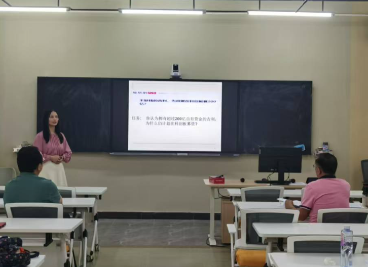 李萧兰老师讲授的是《证券投资分析》课程。李老师以“普通投资者的入门课”为主题,从市场、工具和自我等三个方面来讲授投资中的相关知识,从实用性和趣味性出发,结合自身经验,利用生活中的经济案例牢牢抓住大家的眼球,设计了一节生动、有趣、别开生面的课堂,教学目标明确,教学环节紧凑,教学内容丰富多彩。