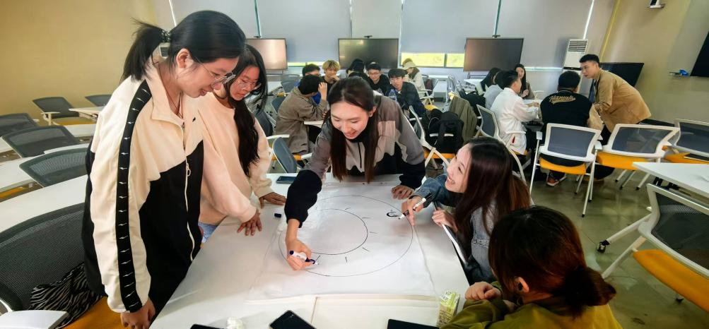 为了让同学们将理论知识更好地应用于实践,张瑞雪老师设计了一项小组创意任务,以 “创造力是人类生生不息的源泉” 为主题进行绘画创作。同学们热情高涨,迅速分成四个小组。在小组讨论环节,大家积极交流、各抒己见,充分发挥想象力和团队合作精神,创作出一幅幅充满创意与思考的成果。