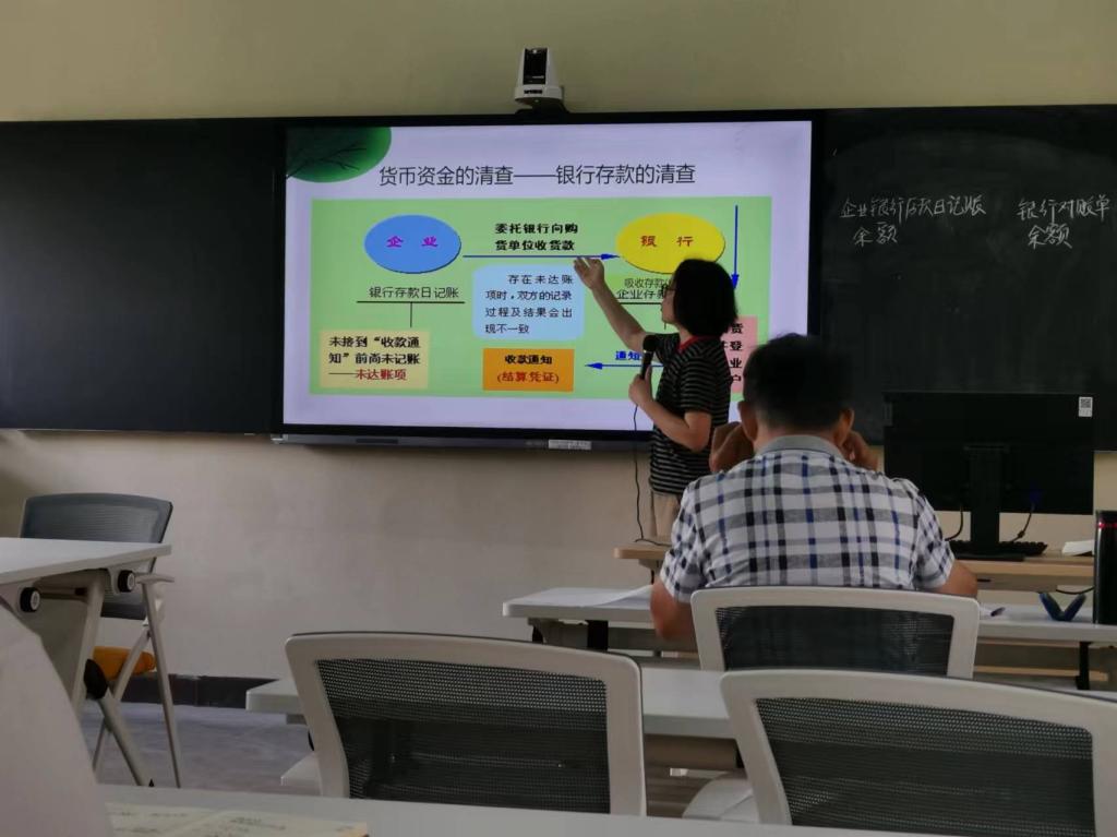 模拟授课环节则是对说课环节的进一步深化,李老师选取货币资金清查的知识点作为模拟授课的内容。首先由李老师对业务处理流程进行深入讲述,让学生更加直观地理解货币资金清查的流程和要点,然后再通过具体案例带领学生进行货币资金清查的实操演练,加深了对货币资金清查流程和要点的理解。