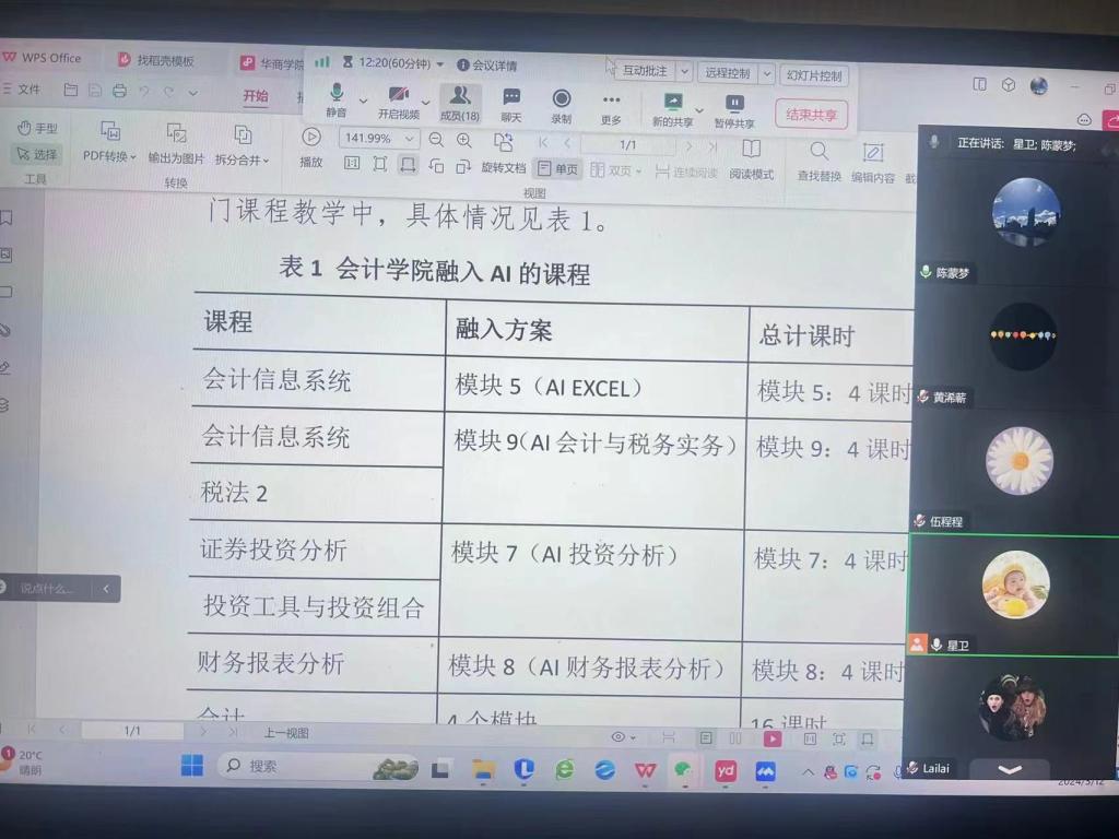 2024年3月12日,《会计信息系统》课程组召开AI模块嵌入课程学习线上研讨会。会议由《会计信息系统》课程负责人范卫星老师主持,beat365在线体育官网登录入口主任陈蒙梦老师、大数据与会计教研室主任陈顺意老师及《会计信息系统》课程组全体教师参会,积极探讨AI模块嵌入课程学习的创新路径。